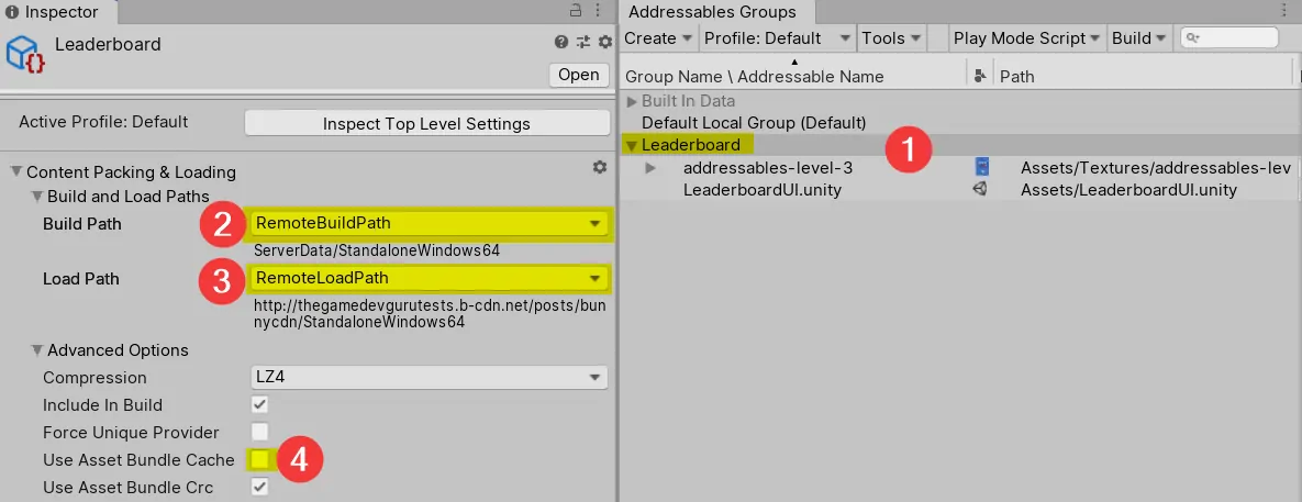 Back to the Addressables Groups, make sure the current profile is set to the profile we just modified.