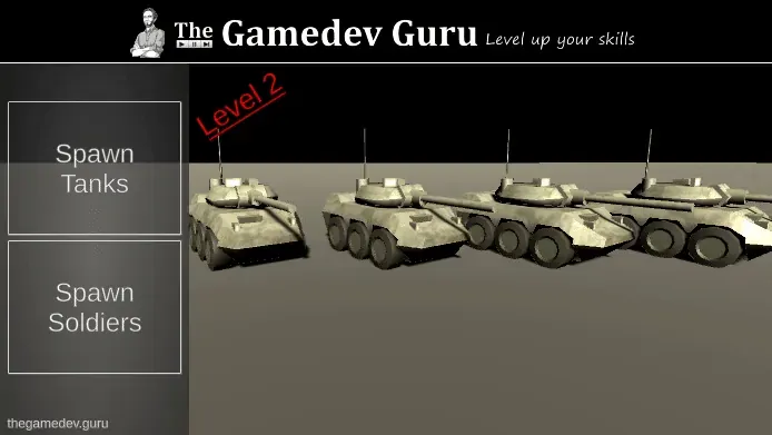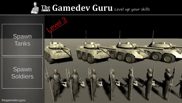 The project setup used in this post is simple. The user can spawn or despawn copies of two types of prefabs: a tank or a soldier.