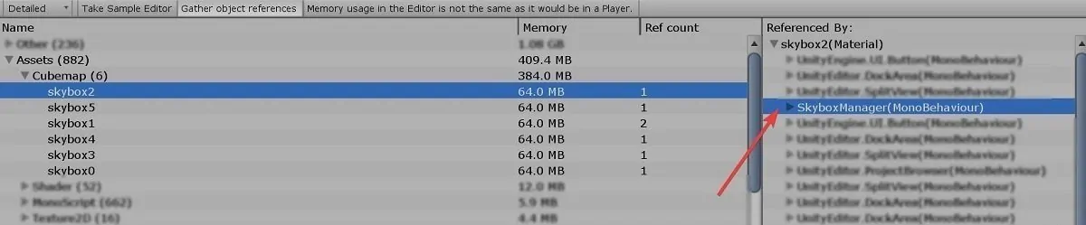 The numbers on the texture size look pretty oversized for just displaying a single skybox at any given time, don’t you agree? Surprise incoming: this is the pattern you will find in many unoptimized projects you are likely to suffer lead. But heck, in this case it’s just a collection of skyboxes. In others, it will be more about characters, planets, sounds, music. You name it, I have it.