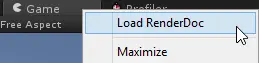 You do this by going to Unity’s game tab and simply opening the tab options + clicking on Load RenderDoc.