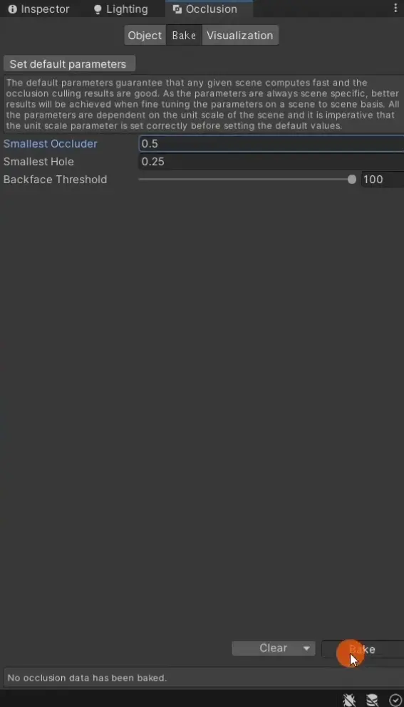 Here, we just need to find the right baking parameters for the occlusion culling to do it properly.
