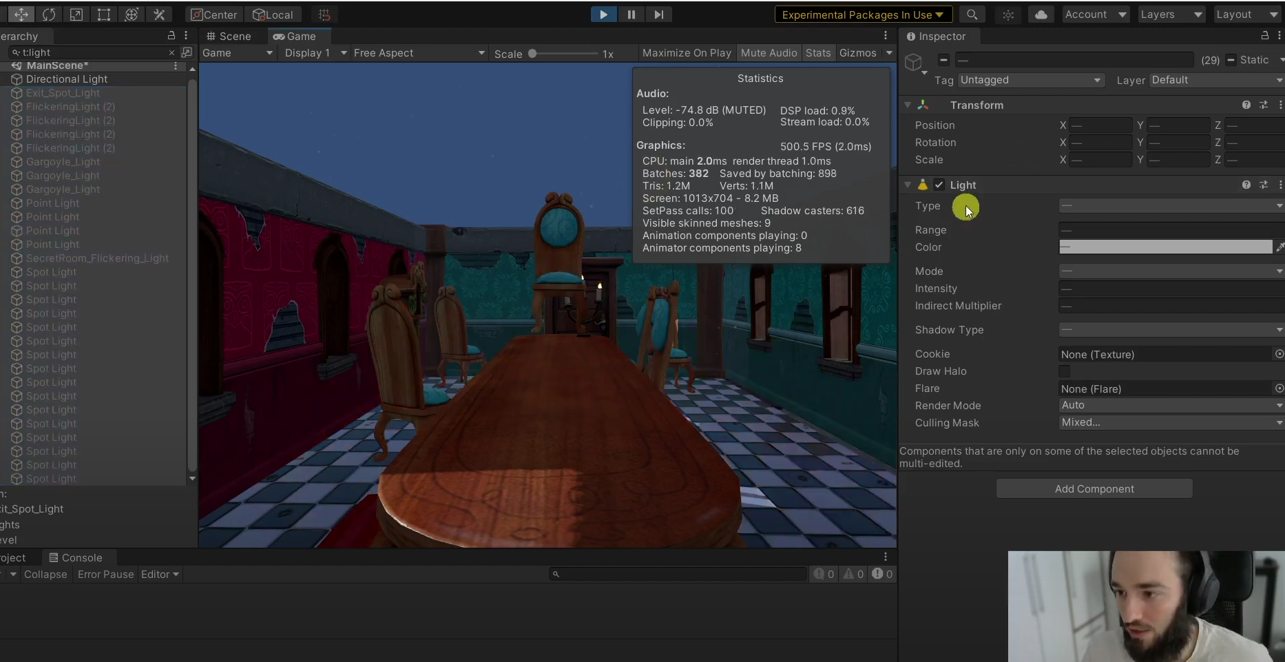 Just type t:light in the scene hierarchy and indeed you see we have too many real-time lights in the scene.