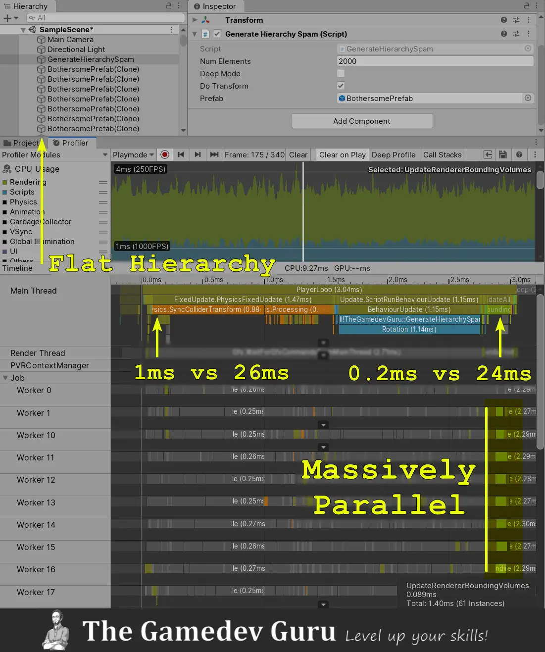 Unoptimized hierarchies causes two BIG problems in Unity.
