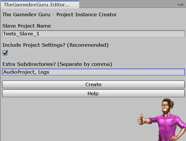 Download the package below and drop the script somewhere in your Unity project. Then, you will have a brand new tool at your disposal under Window → The Gamedev Guru → Editor Instance Creator. Open the window and start creating Multiple Unity Instances slave projects!